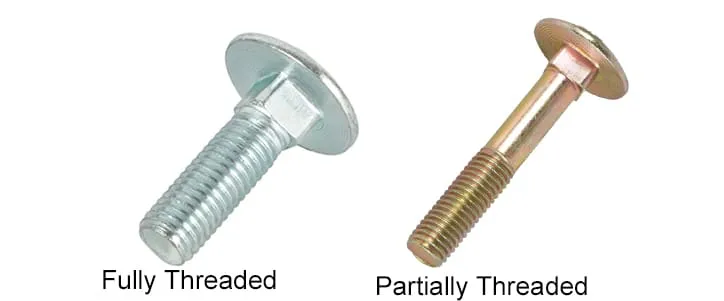 - Parafusos de carruagem parcialmente roscados: Outros parafusos de carruagem podem ter rosca apenas parcial, com a rosca estendendo-se da extremidade do parafuso até um determinado ponto, deixando uma parte da haste sem rosca. Esse design é frequentemente usado em aplicações onde o parafuso precisa atravessar materiais mais espessos ou onde a parte sem rosca proporciona maior resistência ao cisalhamento.