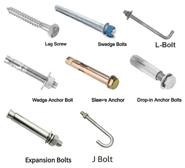 Anchor bolts come in various shapes and sizes, each serving a specific purpose. The most common types include: